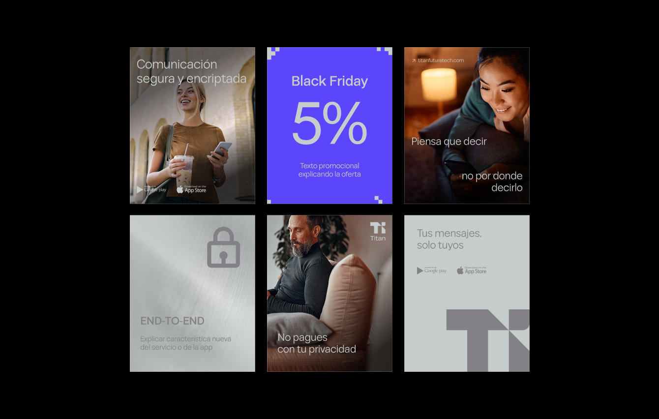 El producto principal es una app de mensajería de pago diseñada con un enfoque único en la seguridad. Hemos elegido el titanio como símbolo, ya que materializa los valores que definen nuestra marca.